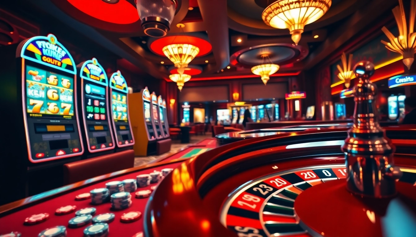 Nổ hũ rikbet showcasing vibrant slot machines and an engaging casino atmosphere.