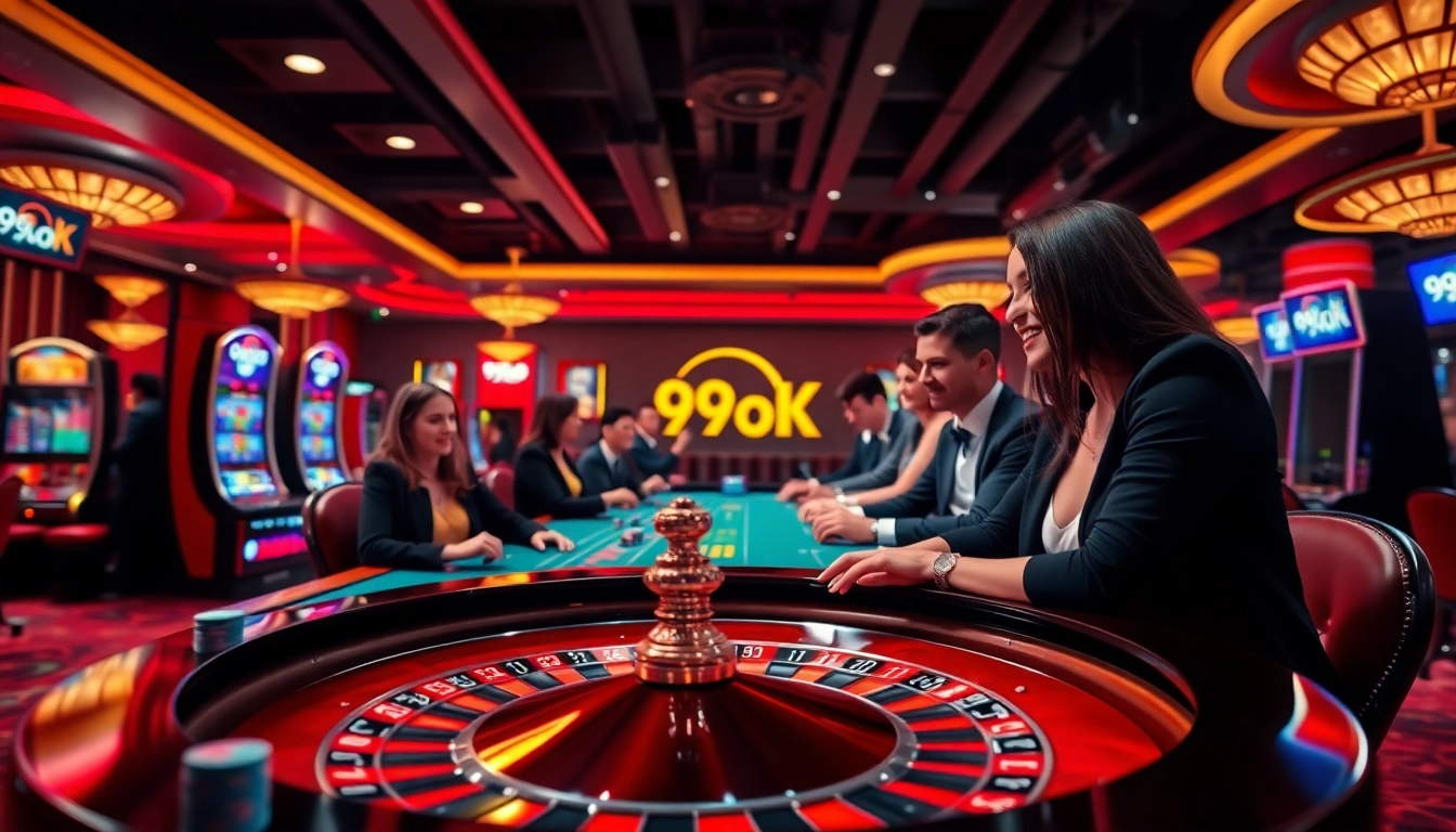 Experience the thrill of betting at 99OK with vibrant casino action and luxury decor.